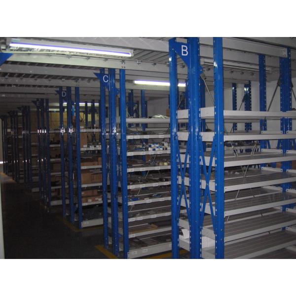 There can be two or three levels. It is suitable for storing light bulbs and small pieces of cargo, especially those of high-volume and multi-species or of multi-species and low volume. Cargos are usually elevated to the second floor or third floor by forklifts, hydraulic lifts or freight elevator, and then sent to a location by a car or pallettruck.